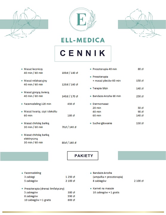 Masaż szyi , Kinesiotaping twarzy , Tejpy , Terapia sportowców , Pinoterapia , Dermomasaż, Zabiegi na ciało , Zabiegi ujędrniające , Zabiegi ujędrniająco-wyszczuplające , Bandaże Arosha , Masaż terapeutyczny , Masaż sportowy , Masaż odchudzający , Zdrowie i relaks , Masaż dla zdrowia i relaksu , Usługi masażu , Masaż antystresowy , Koncepcja Frs'c , Terapia holistyczna , Naturalny lifting twarzy , Masaż tkanek głębokich , Ell , Ellmedica , Medica , Hugona , Kołłątaja , Voucher na masaż , Karta podarunkowa , Karta podarunkowa na masaż Białystok